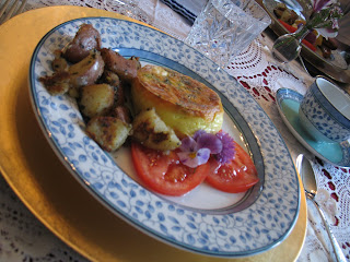 Breakfast on Sunday - onion and cheese souffle with roasted potatoes.